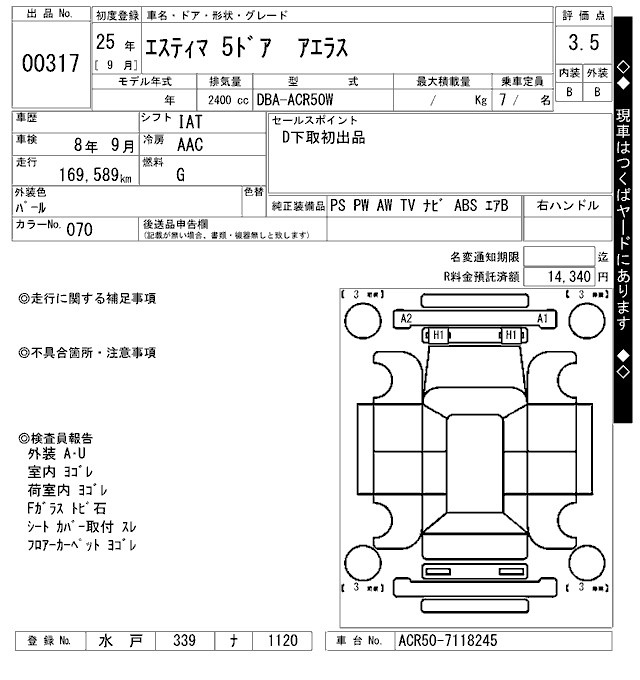 TOYOTA ESTIMA - лот 317