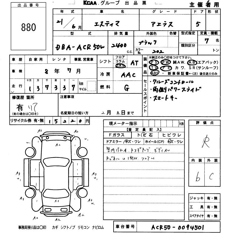 TOYOTA ESTIMA - лот 880