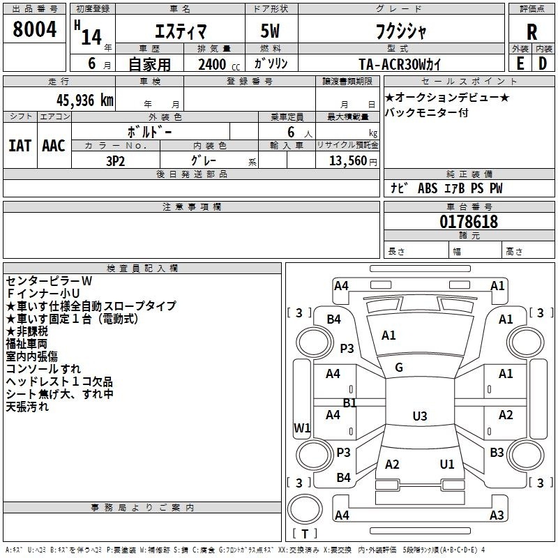 TOYOTA ESTIMA - лот 8004