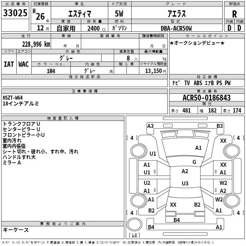 TOYOTA ESTIMA - лот 33025