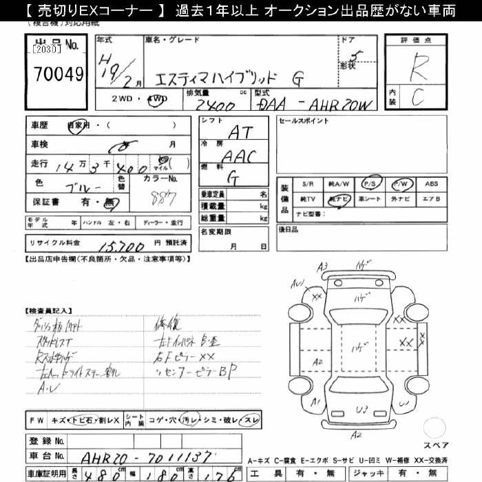 TOYOTA ESTIMA - лот 70049