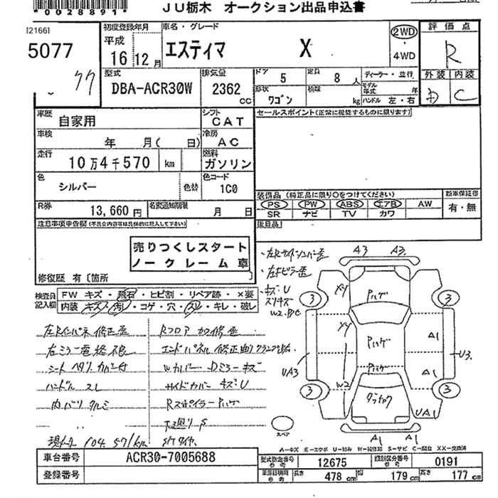 TOYOTA ESTIMA - лот 5077