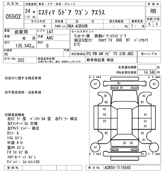 TOYOTA ESTIMA - лот 5502