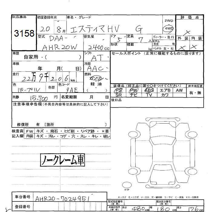 TOYOTA ESTIMA - лот 3158