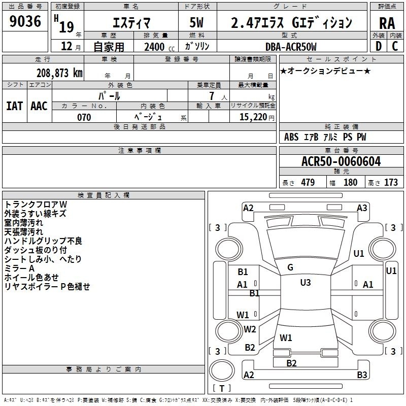 TOYOTA ESTIMA - лот 9036