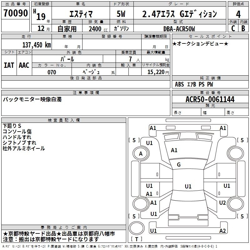 TOYOTA ESTIMA - лот 70090