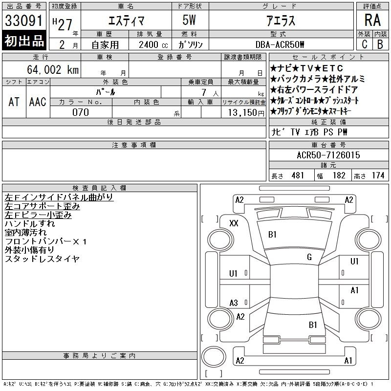 TOYOTA ESTIMA - лот 33091