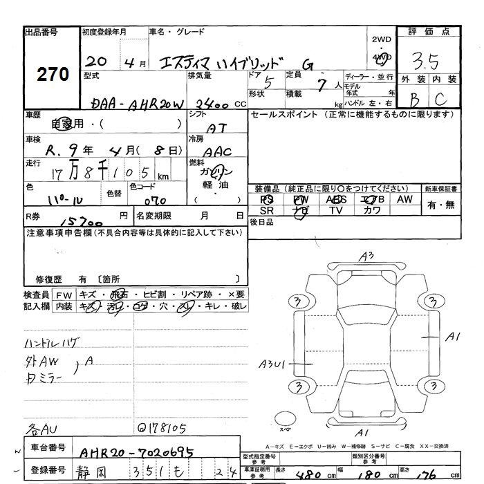 TOYOTA ESTIMA - лот 270