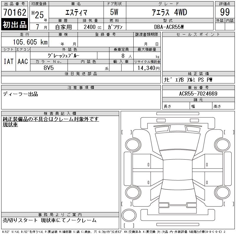 TOYOTA ESTIMA - лот 70162