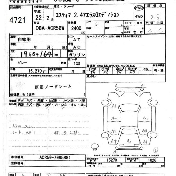TOYOTA ESTIMA - лот 4721