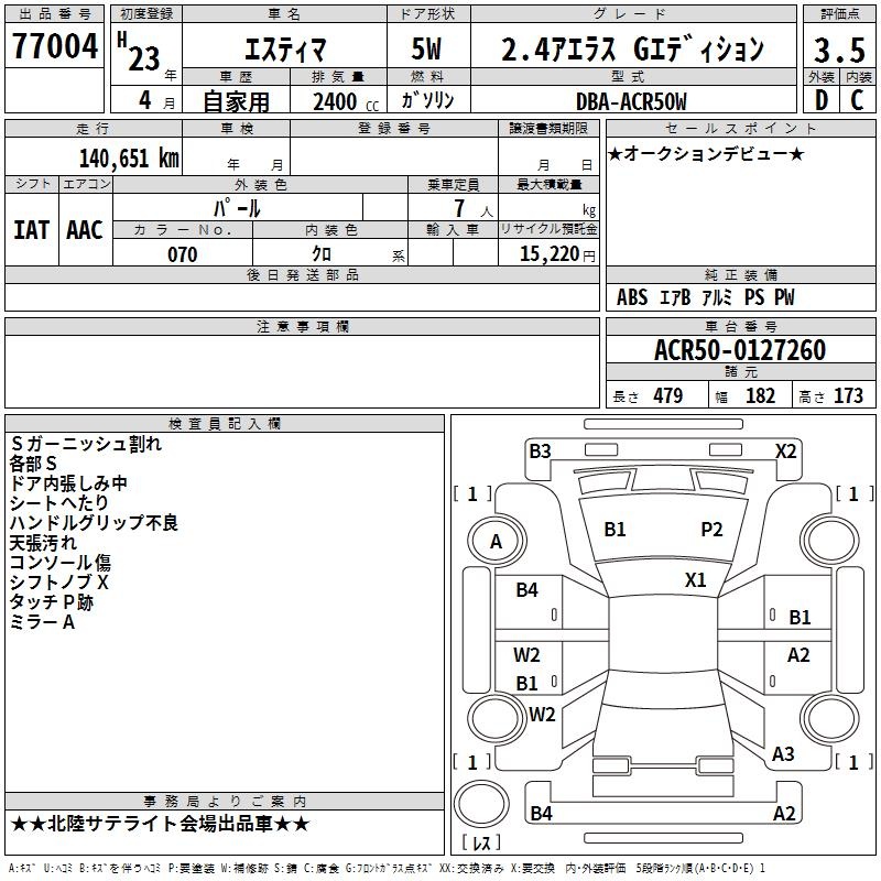 TOYOTA ESTIMA - лот 77004