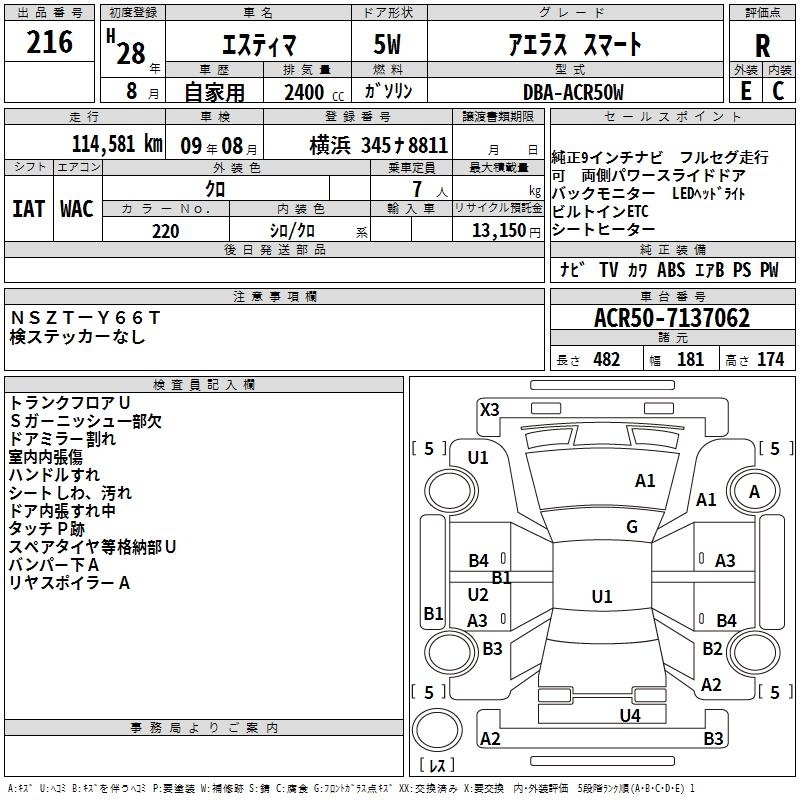 TOYOTA ESTIMA - лот 216
