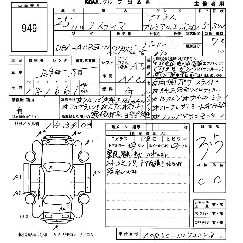 TOYOTA ESTIMA - лот 949
