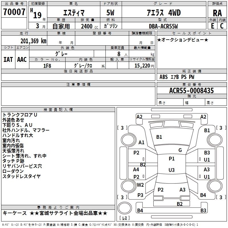 TOYOTA ESTIMA - лот 70007