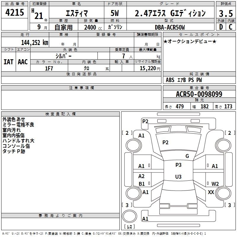 TOYOTA ESTIMA - лот 4215