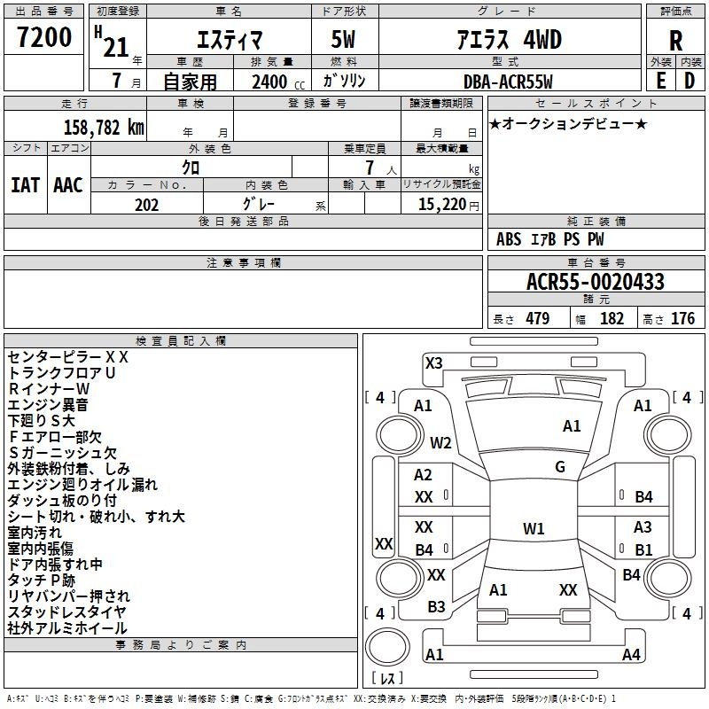 TOYOTA ESTIMA - лот 7200