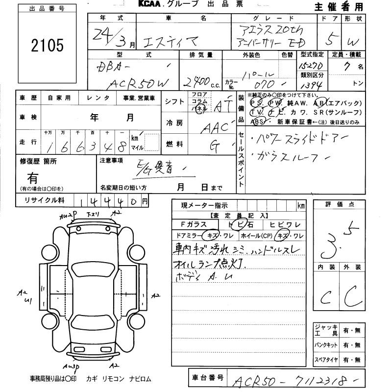 TOYOTA ESTIMA - лот 2105