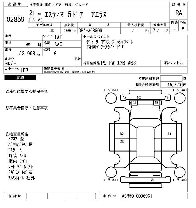 TOYOTA ESTIMA - лот 2859