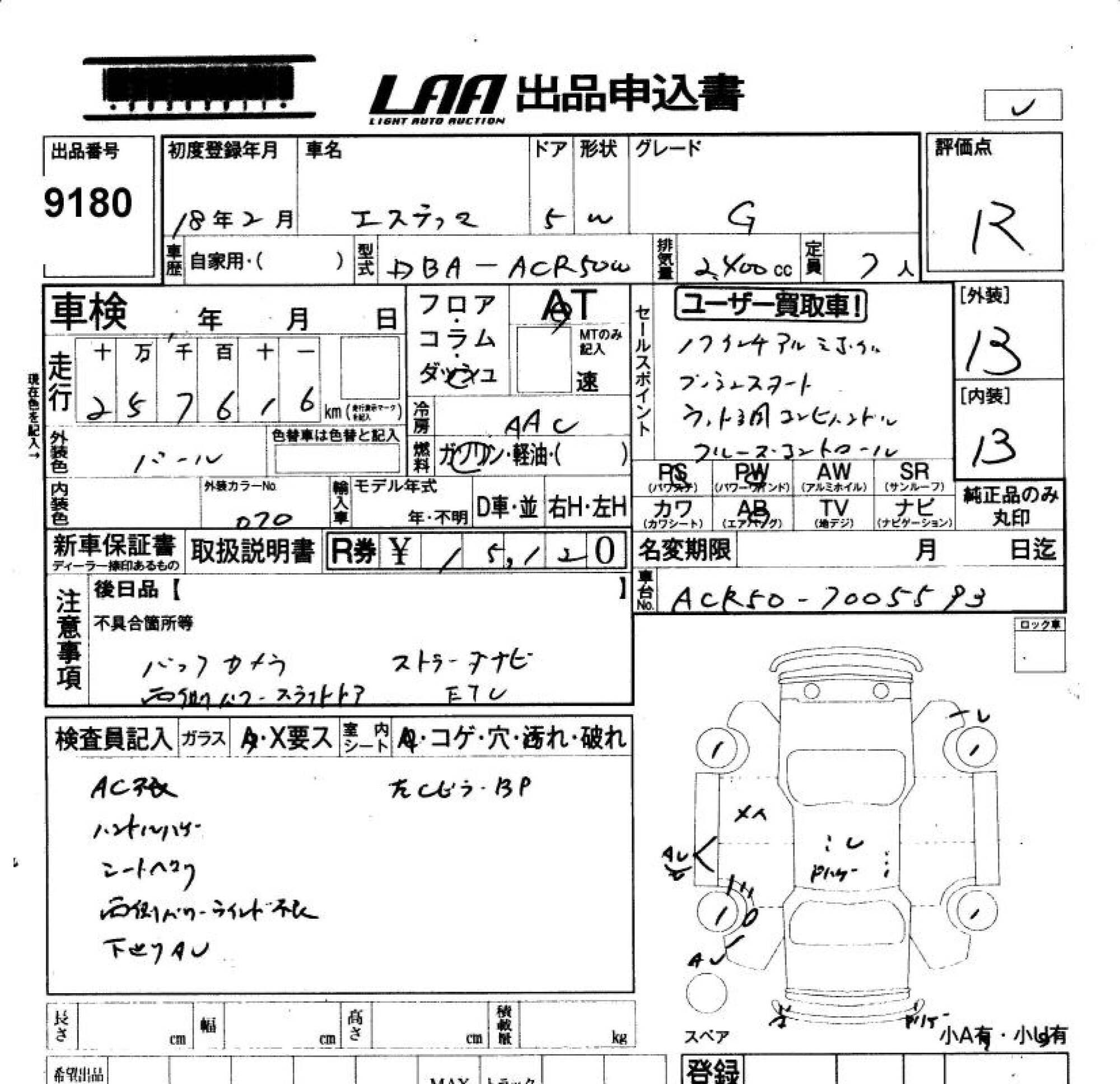 TOYOTA ESTIMA - лот 9180