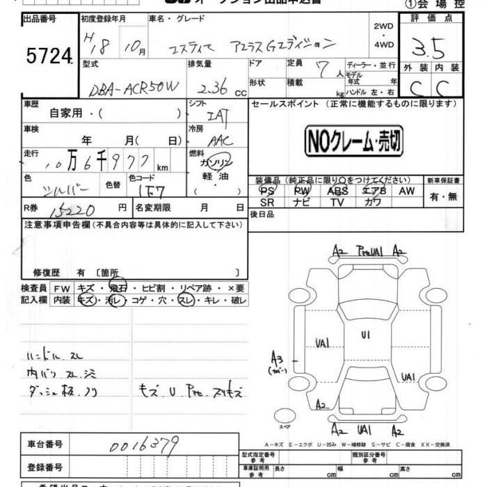 TOYOTA ESTIMA - лот 5724