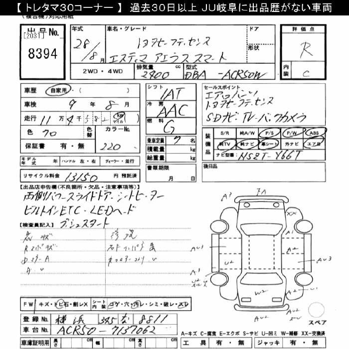 TOYOTA ESTIMA - лот 8394