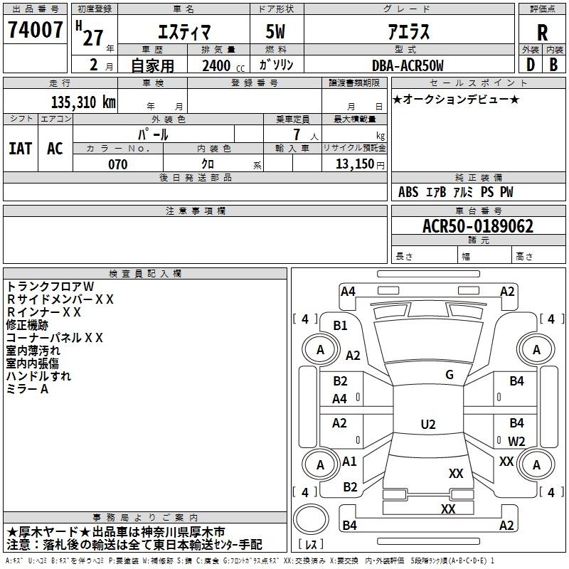TOYOTA ESTIMA - лот 74007
