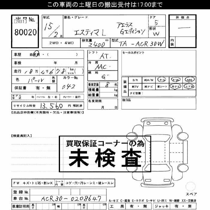 TOYOTA ESTIMA - лот 80020