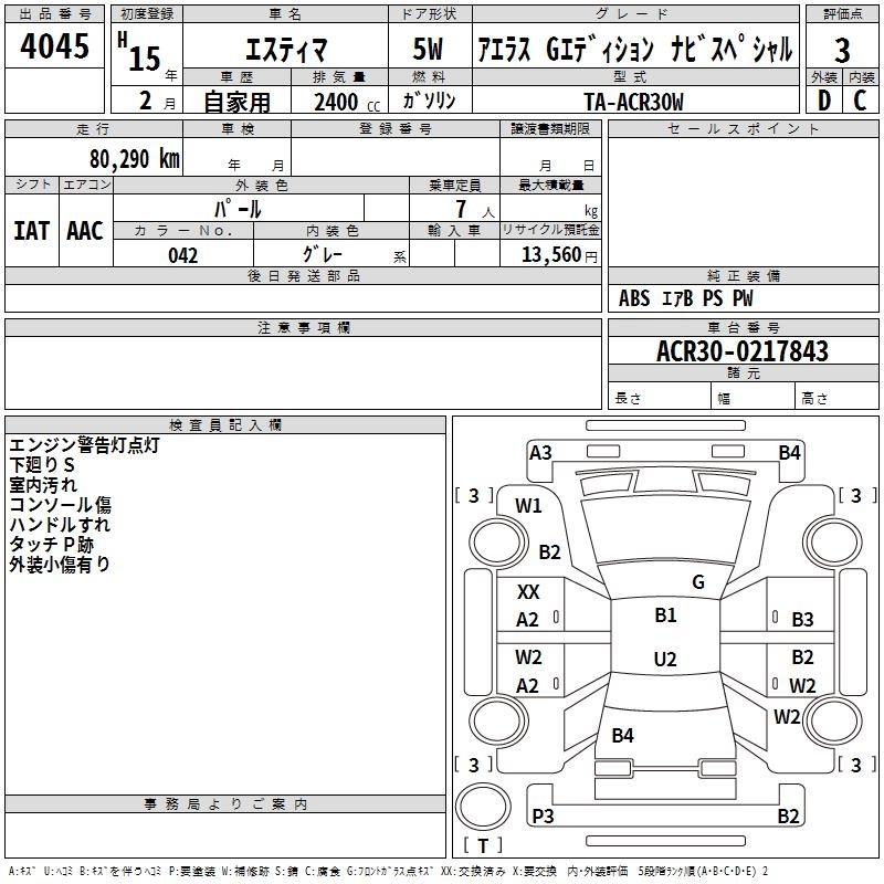 TOYOTA ESTIMA - лот 4045