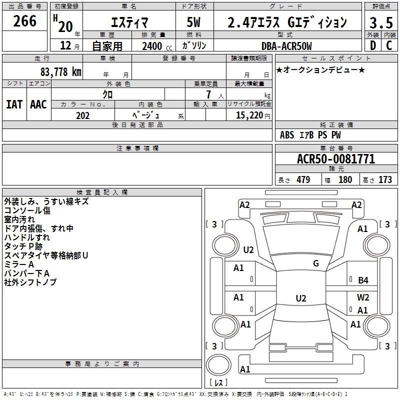 TOYOTA ESTIMA - лот 266