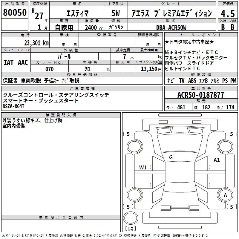 TOYOTA ESTIMA - лот 80050
