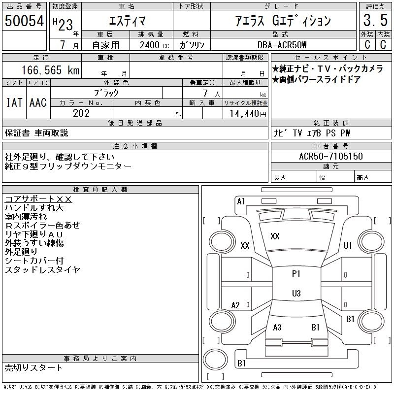 TOYOTA ESTIMA - лот 50054