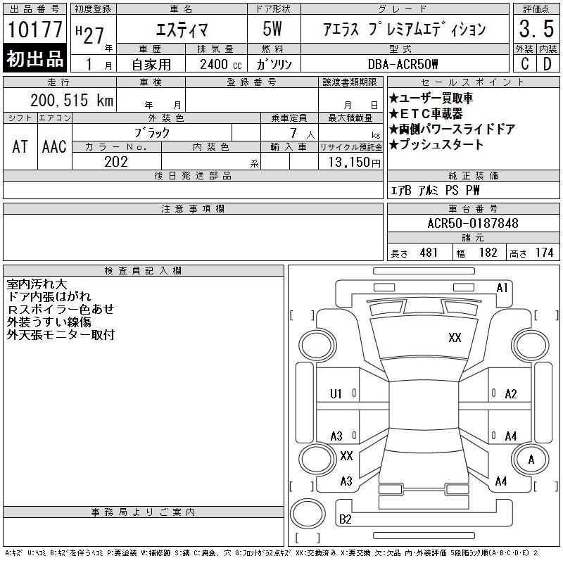 TOYOTA ESTIMA - лот 10177