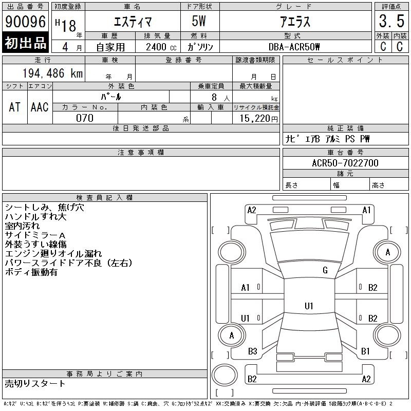 TOYOTA ESTIMA - лот 90096