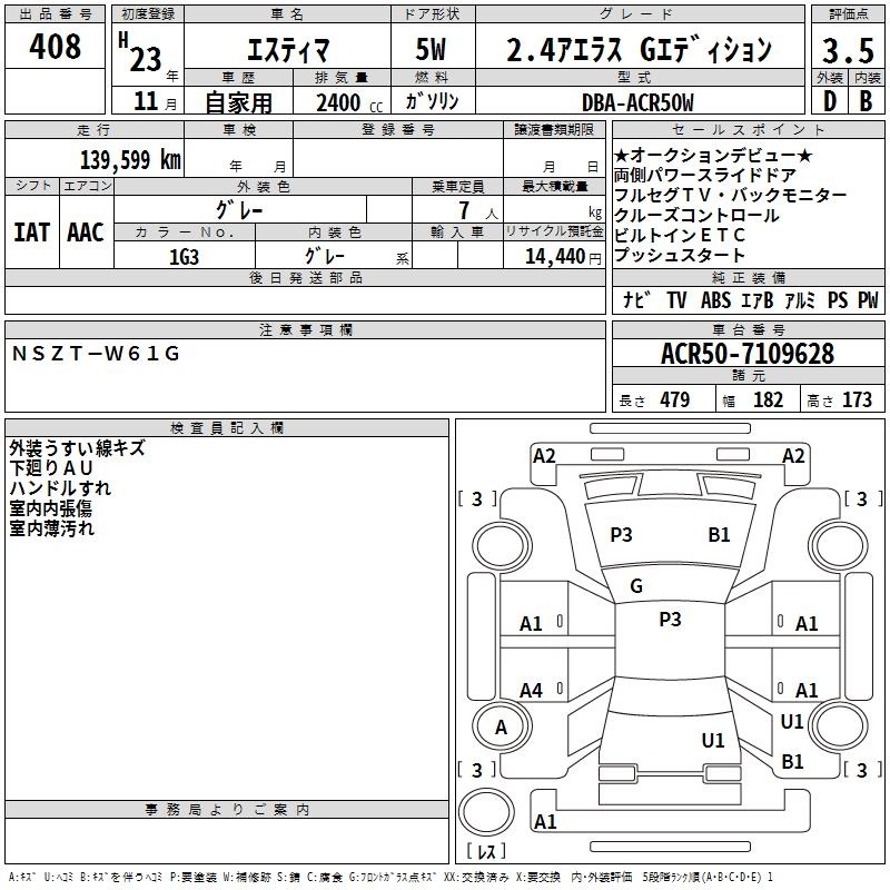 TOYOTA ESTIMA - лот 408