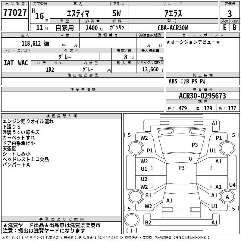 TOYOTA ESTIMA - лот 77027