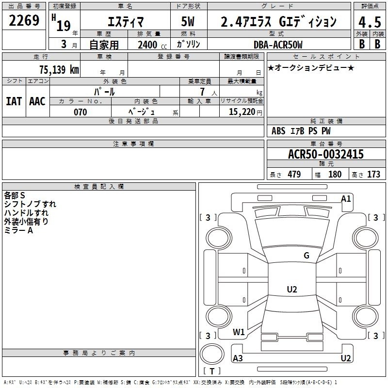TOYOTA ESTIMA - лот 2269