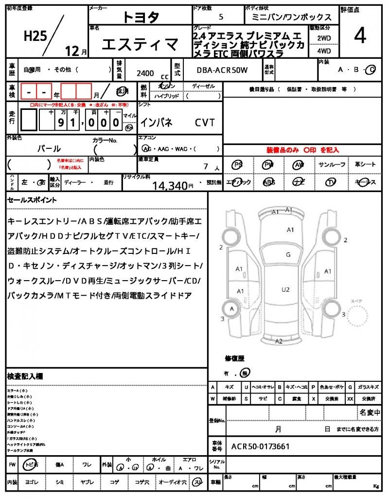 TOYOTA ESTIMA - лот 58587