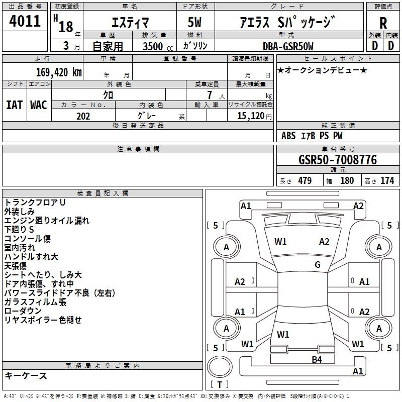 TOYOTA ESTIMA - лот 4011