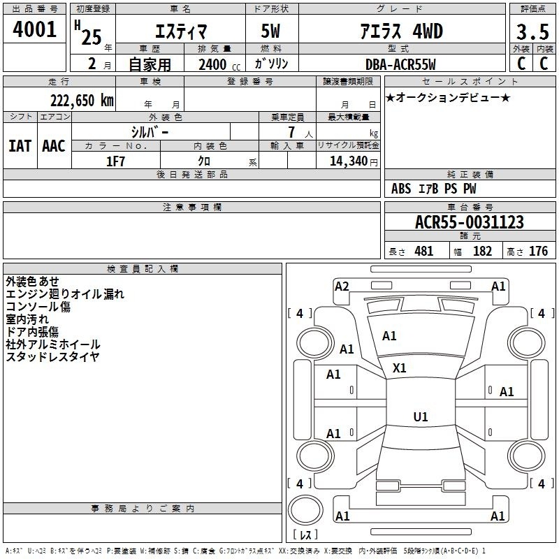 TOYOTA ESTIMA - лот 4001