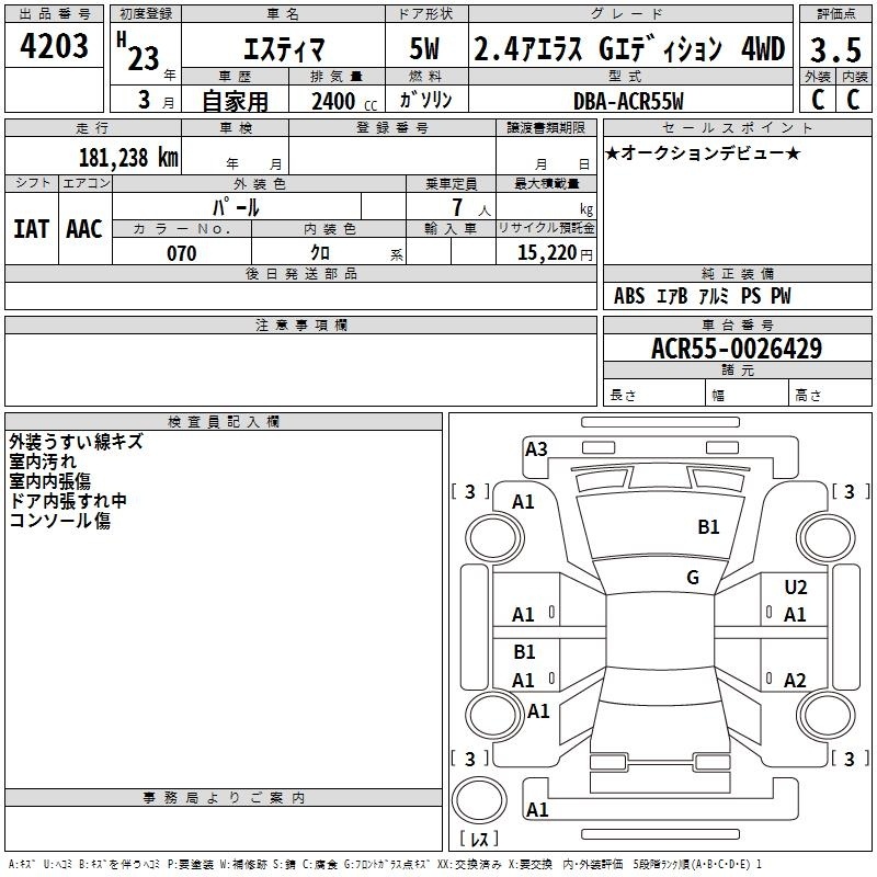 TOYOTA ESTIMA - лот 4203