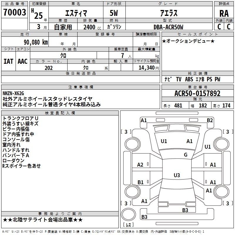 TOYOTA ESTIMA - лот 70003
