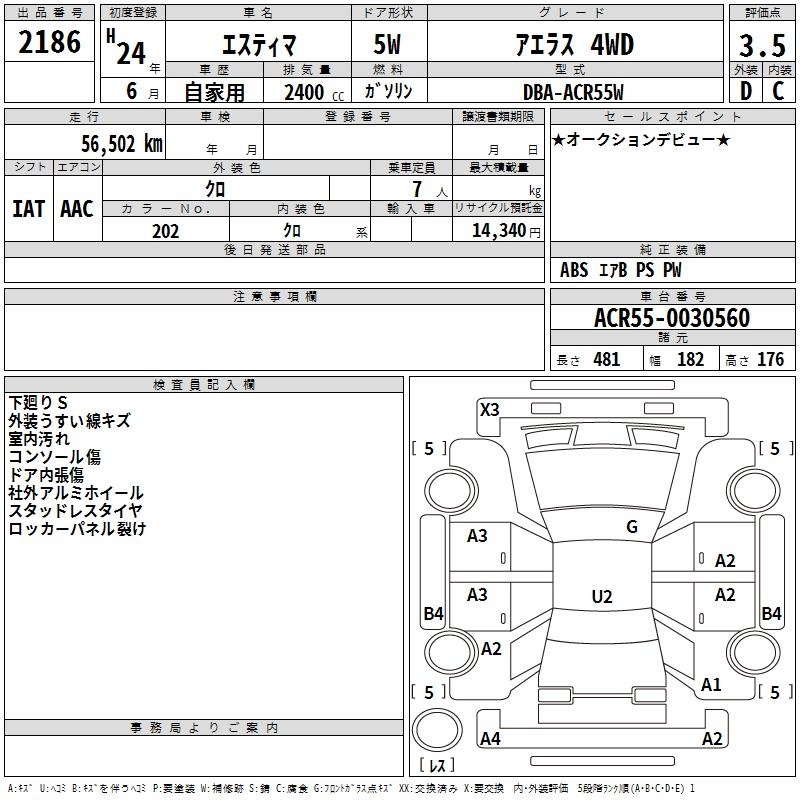 TOYOTA ESTIMA - лот 2186