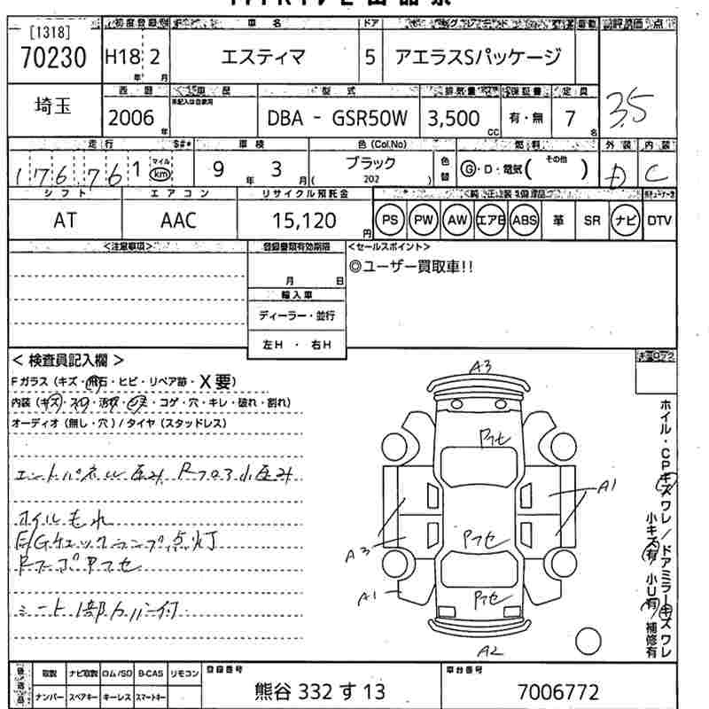 TOYOTA ESTIMA - лот 70230