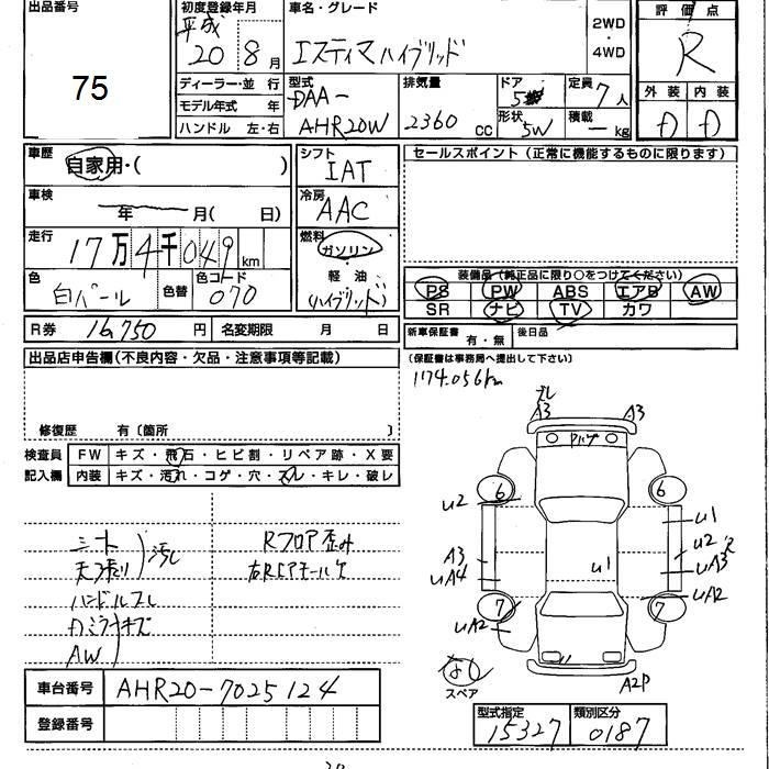 TOYOTA ESTIMA - лот 75