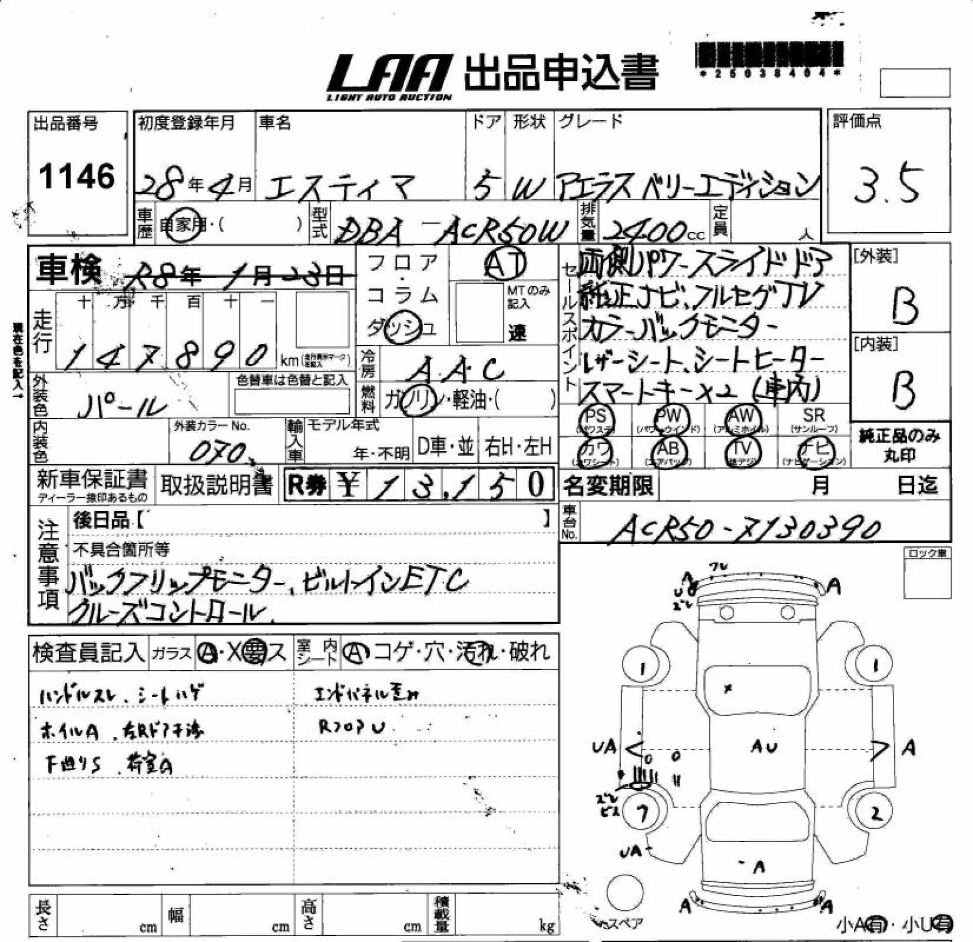 TOYOTA ESTIMA - лот 1146