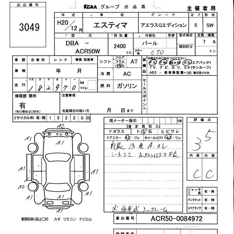 TOYOTA ESTIMA - лот 3049