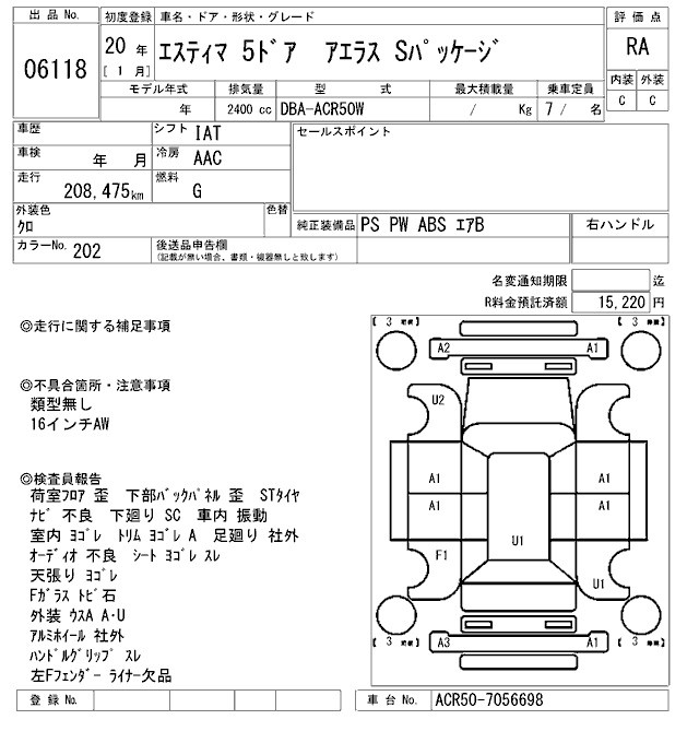 TOYOTA ESTIMA - лот 6118