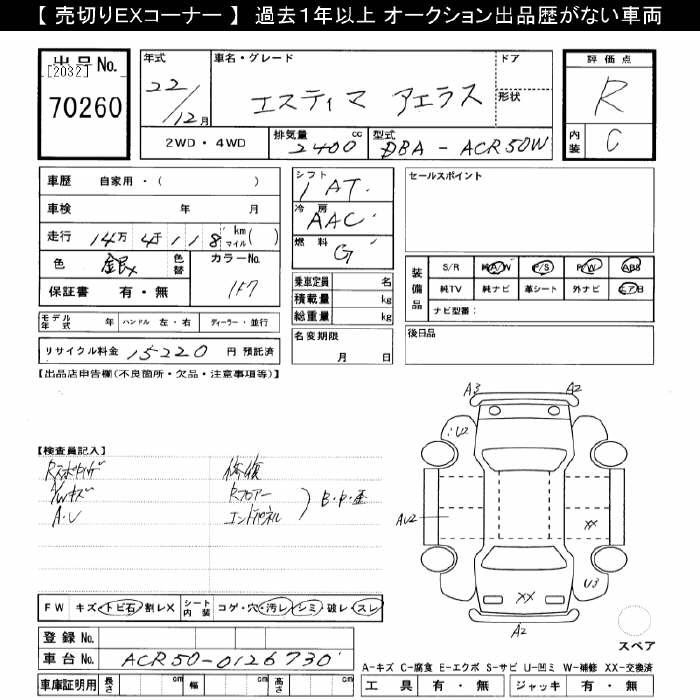 TOYOTA ESTIMA - лот 70260