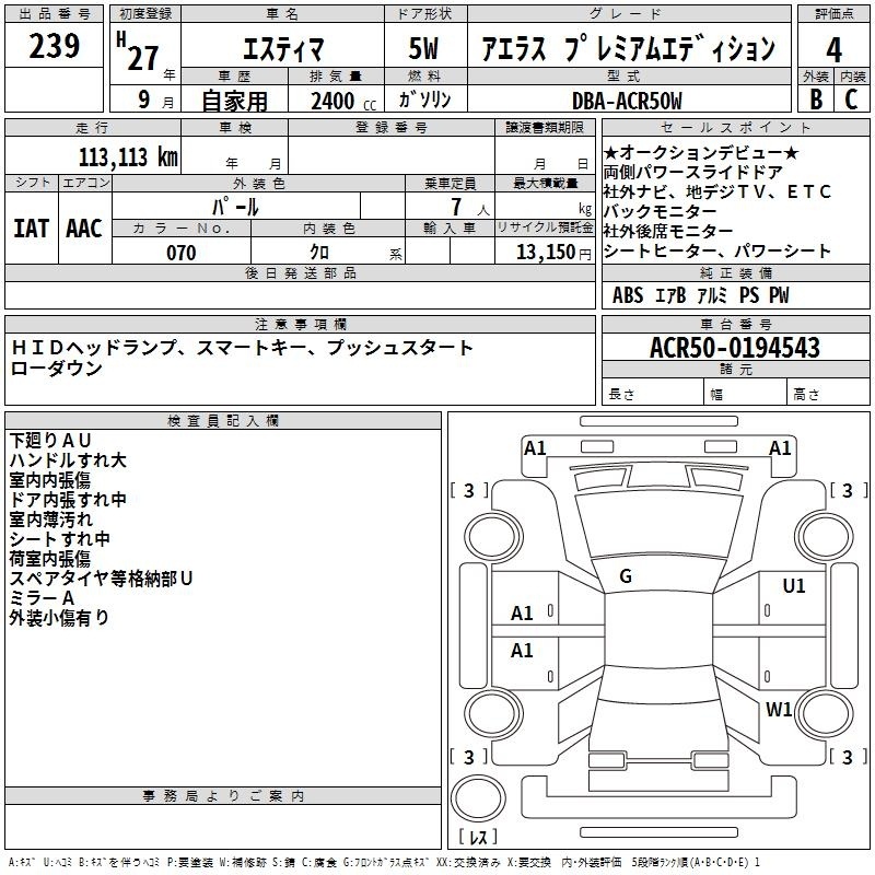 TOYOTA ESTIMA - лот 239