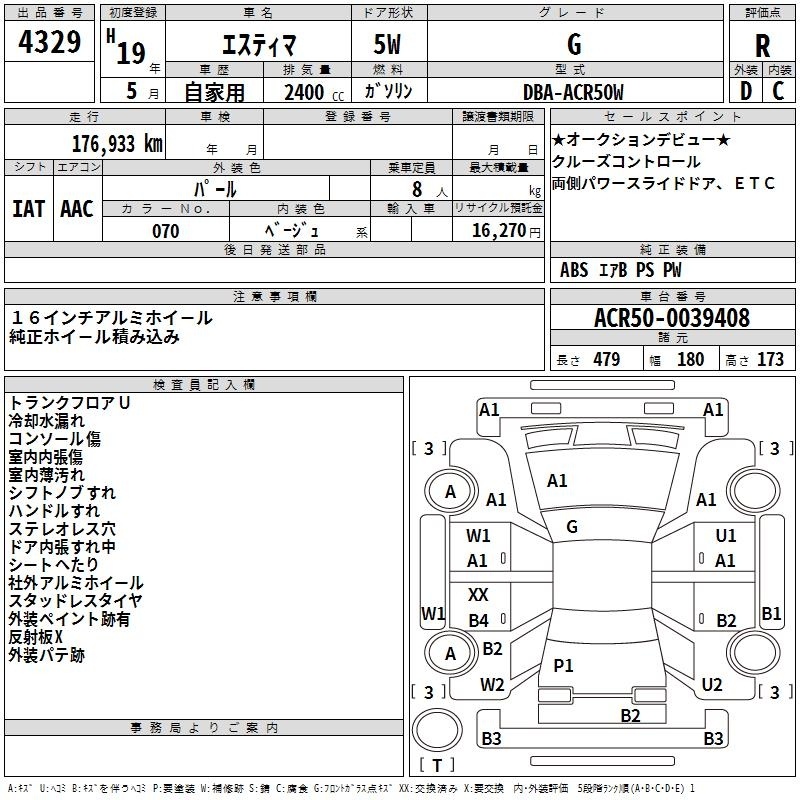 TOYOTA ESTIMA - лот 4329